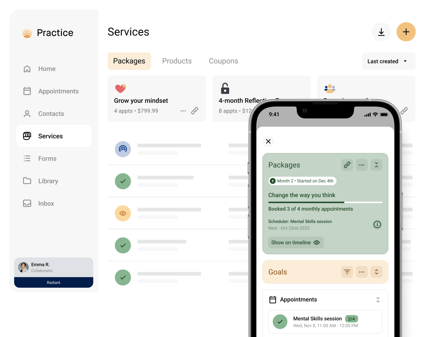 "Practice been great for pulling together the variety of tools I was using into one tool. The real selling point for me is the ability to have a centralized dashboard and communications channel that my clients and I can both communicate privately and with ease. The IOS app makes my life so much easier."