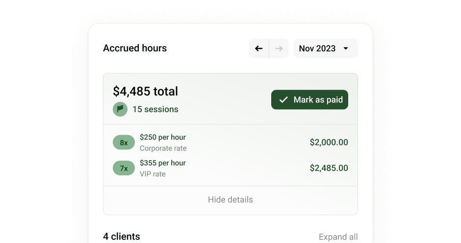 Our team of 60+ coaches used a whole suite of products to manage billing, scheduling, session tracking and client comms. It’s incredible to have found something that integrates this all in one place and creates a much more streamlined experience for both our clients and our team.